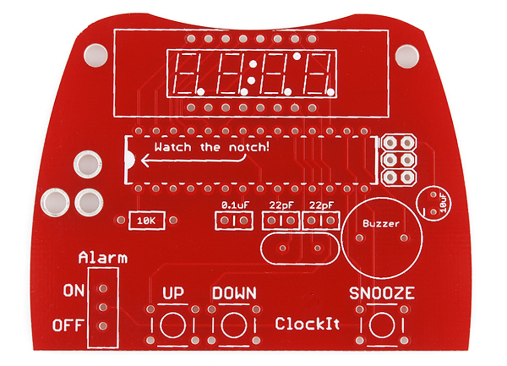 The white silkscreen layer is applied on top of the soldermask layer. The silkscreen adds letters, numbers, and symbols to the PCB that allow for easier assembly and indicators for humans to better understand the board. We often use silkscreen labels to indicate what the function of each pin or LED.