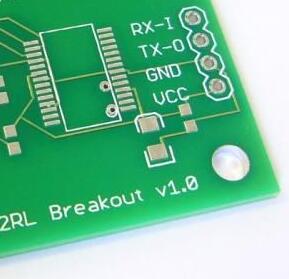 PCB with copper exposed, no solder mask or silkscreen.